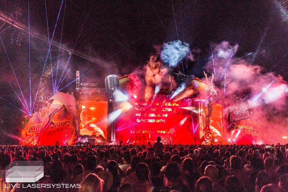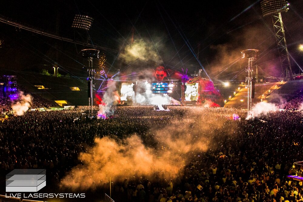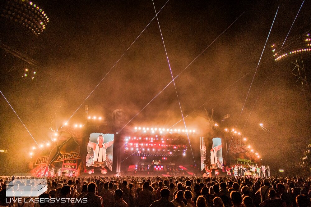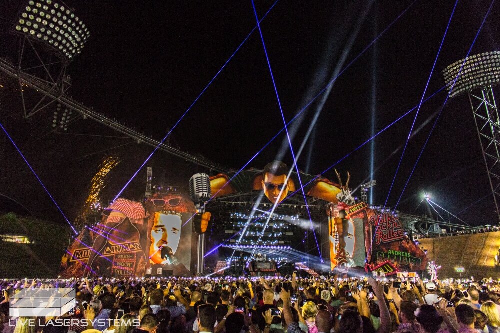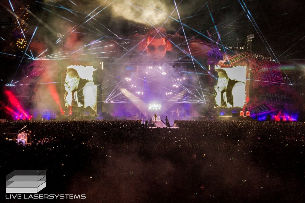 Andreas Gabalier performed in front of over 70,000 fans in the sold out Olympia Stadium in Munich. LIVE Lasersystems set up lasers with powers exceeding 130W.