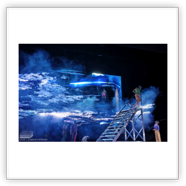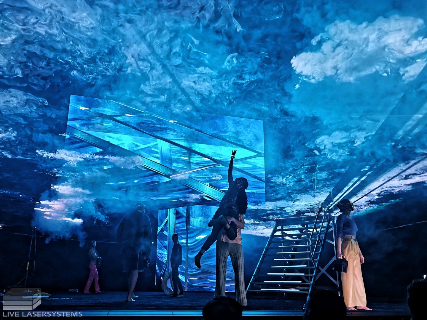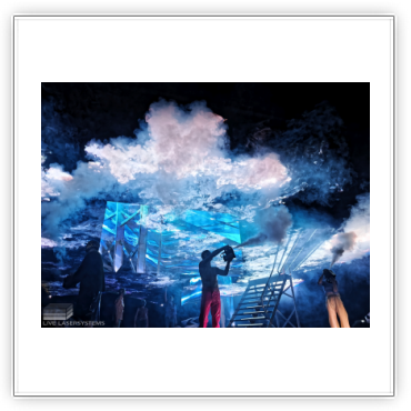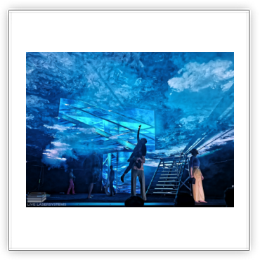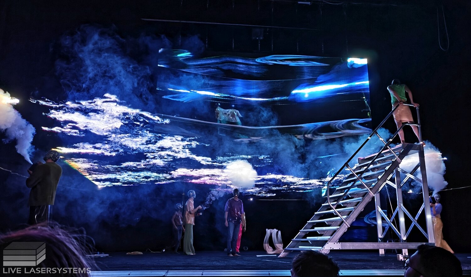 For his interpretation of "Die Angestellten", director Alexander Giesche had the idea of a liquid sky that spreads into the auditorium of the Volkstheater. The architecture of the parquet presented a major challenge here. Minimum heights could not be adhered to and so a solution had to be found that was safe but still clearly visible. In close collaboration with independent experts, we developed a custom version of our KORE series and were able to create an impressive experience that is safe for all spectators - even if they look directly into the laser beams.